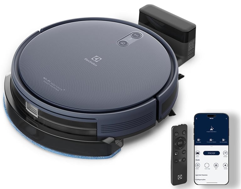 É um robô aspirador 3 em 1, com aspira, varre e passa pano, pensado para quem quer mais automação e personalização na limpeza da casa.